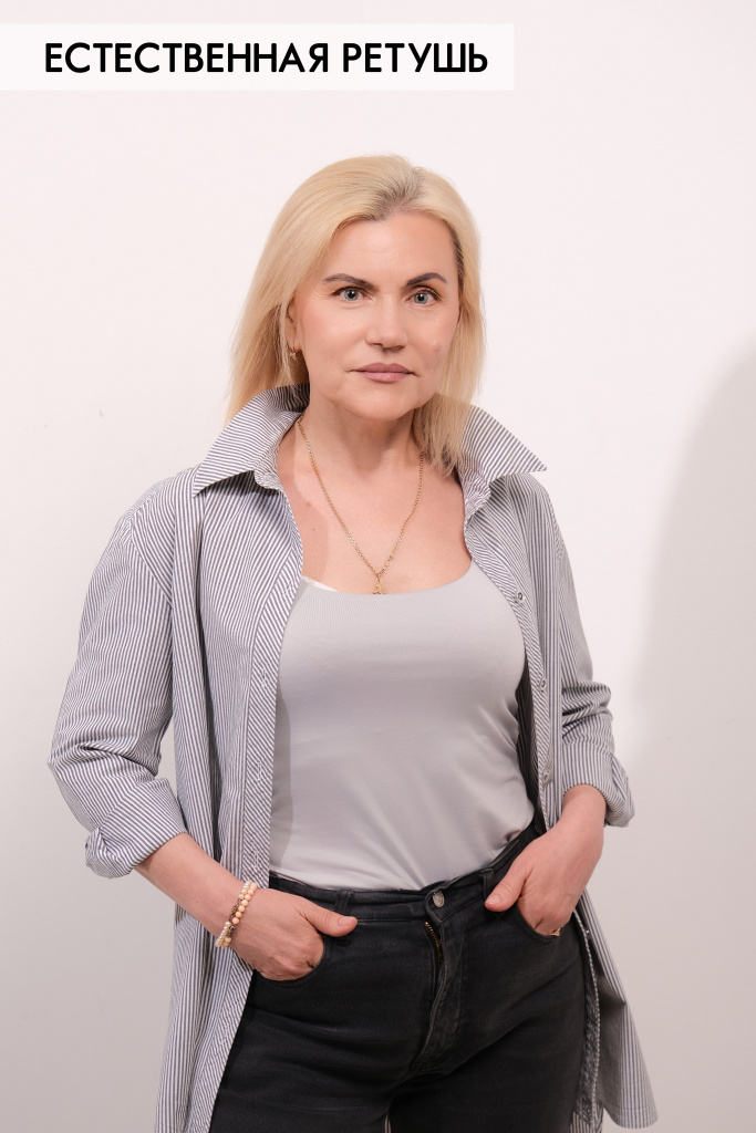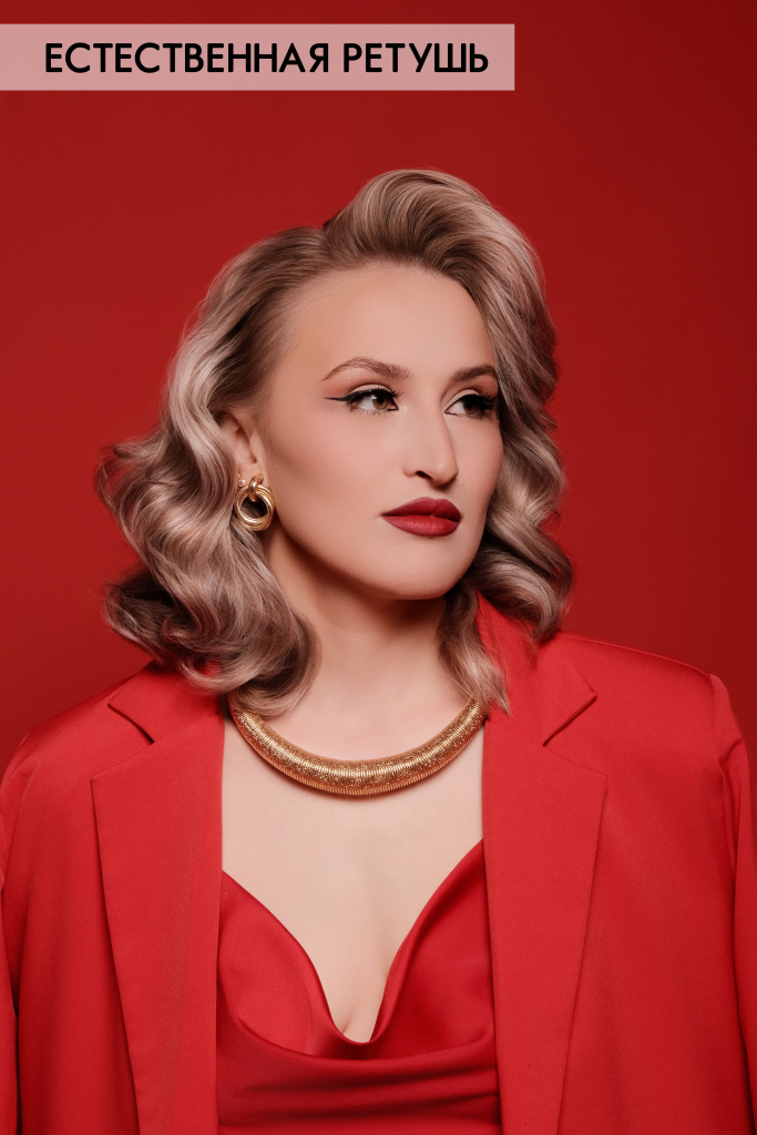 Маскируются крупные несовершенства кожи; приглушаются морщинки; чистится однотонный фон; осветляются зубы; добавляется резкость-контраст и производится свето-коррекция.